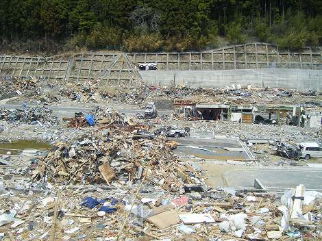女川町の入口付近。同行した南三陸町のC君曰く「地獄の入口だ・・」。