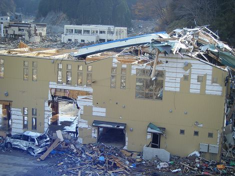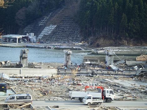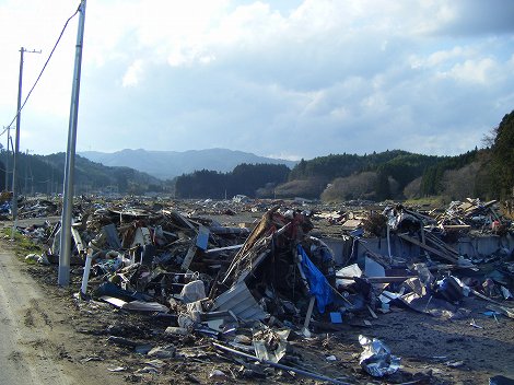 南三陸町は旧志津川町と歌津町が合併してできたんだけど、C君の地元は歌津で志津川からは10Km位距離があり、山あいを走って町に下りるという「リアス式海岸」特有の道路状況な訳で。その山あいを下ると・・・。